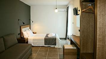 Amphitryon Hotel er et moderne hotell i Rhodos by. Hotellet har et lite bassengområde med solsenger og en bassengbar. Her bor du midt i sentrum, nær shopping, restauranter og andre fornøyelser. Fra hotellet er det bare et steinkast til murene som går rundt gamlebyen samt gangavstand ned til både Windy Beach og Elli Beach.