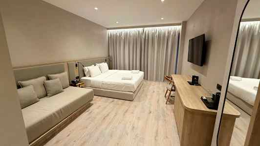 Hotellets bassengområde, med tilhørende solterrasse, ligger rett overfor stranden og innbyr til avkjølende bad med flott havutsikt. Foretrekker du å bade i havet, har hotellet sin egen del av stranden, hvor solsenger og parasoller er inkludert. Her kan du enkelt veksle mellom forfriskende svømmeturer og avslapning i solen.