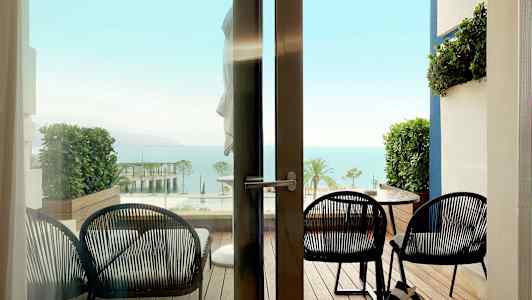 På hotellets takbar, med panoramautsikt over det glitrende havet, kan du nyte en god drink eller en lett snack mens solen sakte går ned. På takterrassen finner du også et herlig bassengområde, hvor du kan slappe av på en solseng eller ta et forfriskende bad. Priam Hotel Luxury Resort har i tillegg en egen del av stranden, med solsenger og parasoller som er inkludert for hotellets gjester. Ved siden av stranden ligger en større badebrygge, hvor du kommer deg ut i havet via trapper.