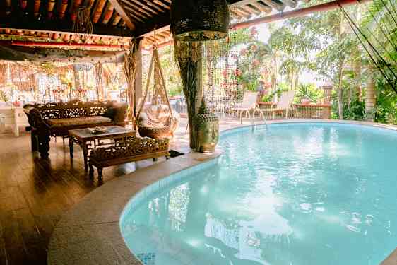 Aquabarra Boutique Hotel ligger i Búzios og byr på rolig og avslappende atmosfære i bohemsk stil. Her er interiøret gjennomført, med hengekøyer og utskårne møbler rundt hotellets lille basseng. I hotellets spa kan du unne deg velværebehandlinger, og i restauranten kan du nyte en smakfull middag. Hotellet ligger ved starten av halvøya Búzios. Det er ca. to kilometer til Rua das Pedras, som du enkelt kommer deg til med lokalbussen.