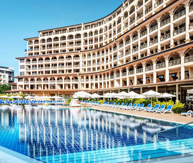 Melia Sunny Beach er et stort All Inclusive-hotell i Sunny Beach, med et romslig bassengområde med tre basseng, flere barnebasseng samt et lite badeland med vannsklier.