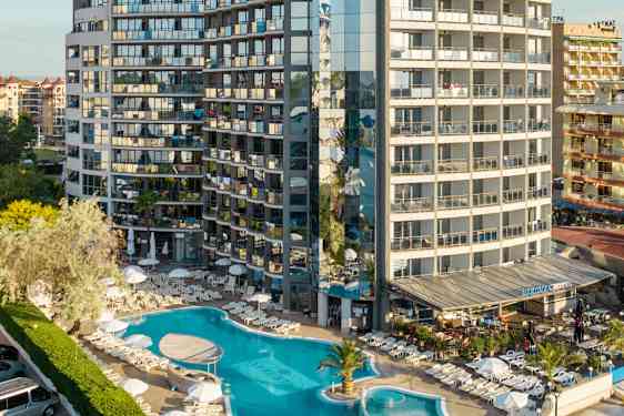 Ikke langt fra den fine sandstranden i Sunny Beach ligger det Meridian Hotel, et livlig hotell hvor det er mulig å bestille All Inclusive. Her trives du som vil bo i nærheten av stranden og Sunny Beachs store utvalg av butikker, restauranter og uteliv. På Meridian Hotel er det basseng med bassengbar, treningsrom og et enkelt spa som tilbyr diverse skjønnhetsbehandlinger.