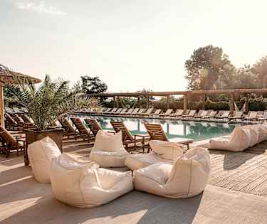 Moderne rom med interiør i bohemsk stil. Rommene har utsikt mot omgivelsene.