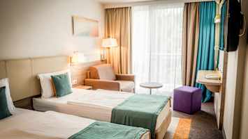 Hotellet har også en privat del av stranden i Albena, der solsenger og parasoller fra tredje rad og bakover er gratis for hotellets gjester. Transport til og fra stranden er inkludert flere ganger daglig (begrenset antall plasser, mer informasjon får du på stedet).