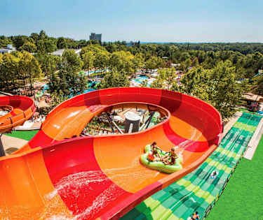 Alle hotellets gjester har gratis inngang og tilgang til solseng og parasoll i det 30 000 m² store badelandet Aquamania. Badelandet er åpent kl. 10.00-18.00 i perioden 15.06.–15.09. På området finnes det blant annet garderobe, safe, bassengbar, snackbar og iskrembar (ikke inkludert i All Inclusive). I tillegg til attraksjonene som er nevnt nedenfor finnes det flere gøyale sklier for små barn.ProRacer