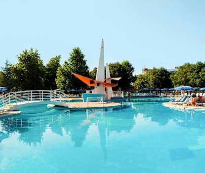 Family Club Ralitsa Aqua har et trivelig bassengområde, og ca. 200 meter fra hotellet ligger et badeland der hotellets gjester har fri adgang. Mer informasjon finner du under «Badeland».