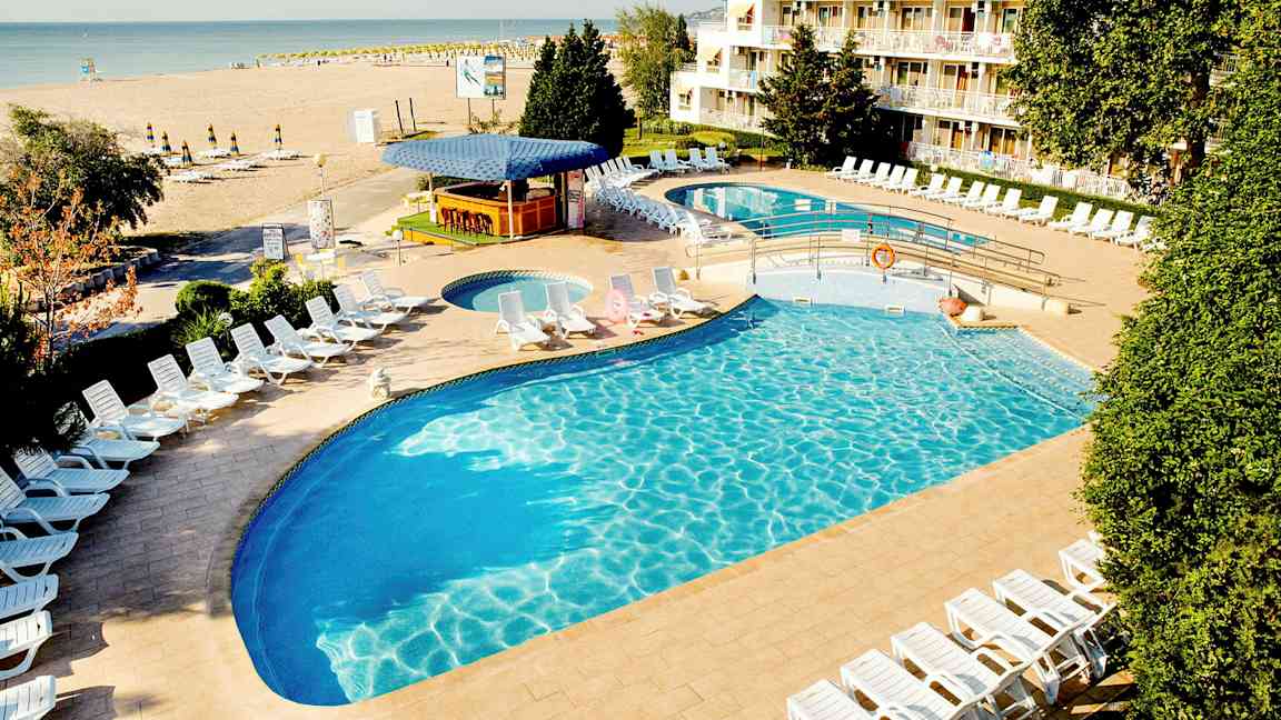 I Albena kan du velge mellom barnevennlige hotell og hotell med All Inclusive. Flere av dem ligger på stranden eller en kort spasertur unna.