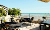 Hotellets restaurant har uteservering, og alle måltider serveres her.