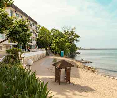 Strandområde med lokaltrafikk. Store trapper og nivåforskjeller på og utenfor hotellet. Fra hotellet tar det ca. 5–10 minutter å gå til Balchik sentrum. I området rundt hotellet ligger det noen få restauranter og butikker. Ved ankomst og avreise stopper busstransporten ca. 30 meter fra hotellet.