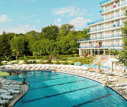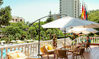 Enkle og litt slitte dobbeltrom. Størrelse og utsikt på balkongene varierer, bestemt rom kan ikke garanteres.
