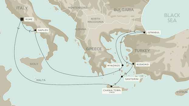 Santorini, Istanbul, Mykonos & Napoli - hotellovernatting i Roma
