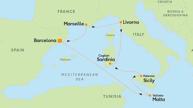 Marseille, Livorno, Sardinia, Sicilia & Malta - hotellovernatting i Barcelona