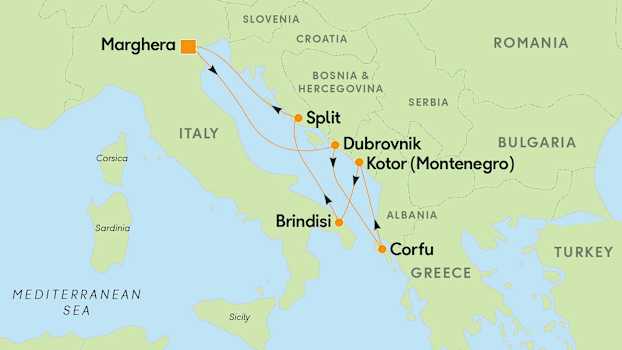Dubrovnik, Korfu & Brindisi - hotellovernatting i Venezia
