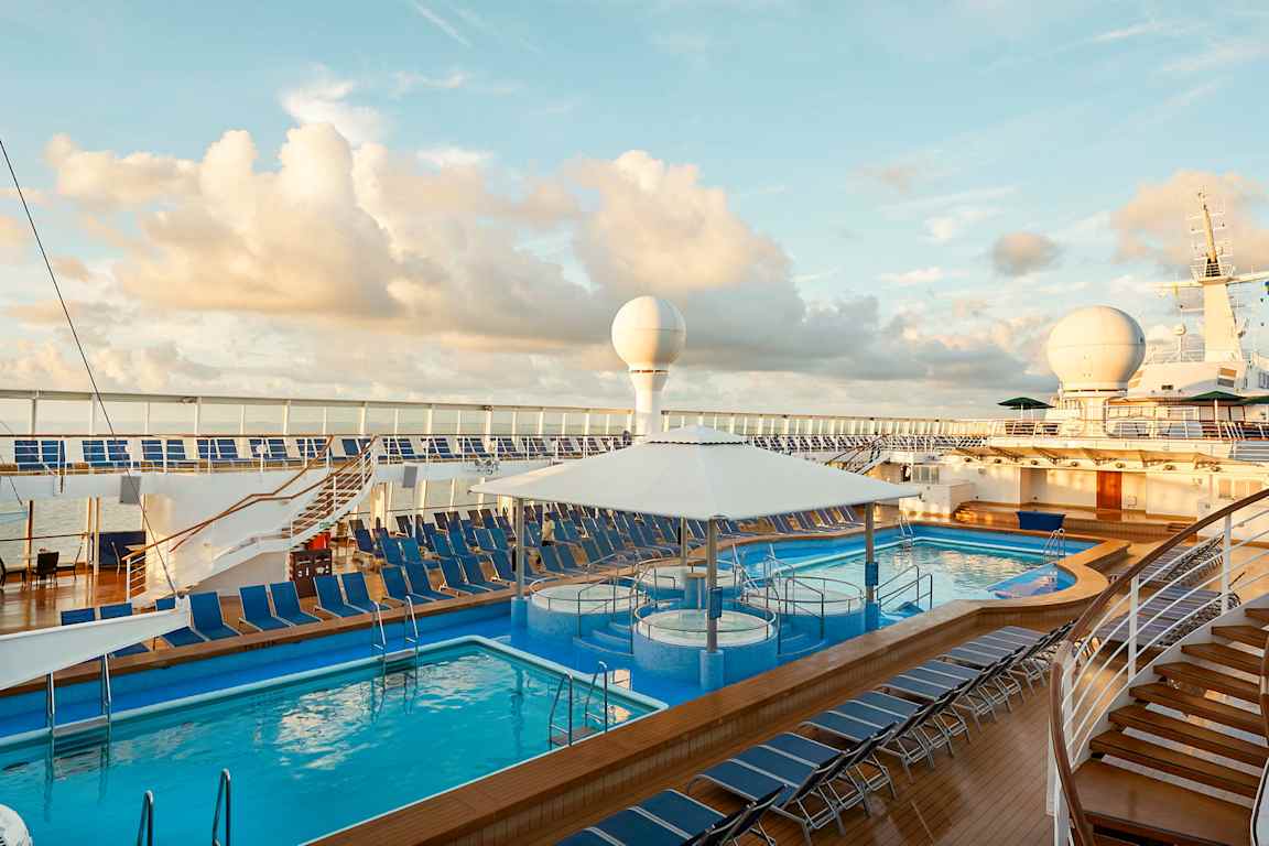 Vær oppmerksom på at bildene kun viser et utvalg fra Norwegian Cruise Line sine ulike skip. Tilbud, lugarkategorier og fasiliteter varierer mellom skipene og valgt lugarkategori.