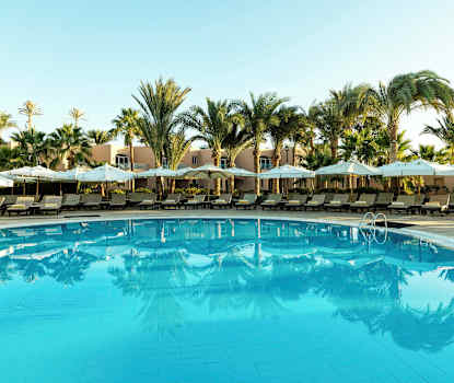 Club Paradisio El Gouna har flere innbydende basseng omkranset av palmer. Her kan du nyte herlige bad og late feriedager på en solseng. I bassengbaren kan du bestille forfriskende drikke og enkle retter. Ønsker du å ta en dukkert i Rødehavets salte bølger, tilbyr hotellet solsenger og parasoller på sin private strand.