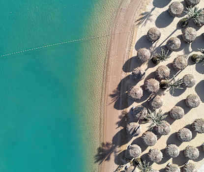 Hotellet har et bassengområde med solsenger og parasoller. Det finnes også et innendørsbasseng i tilknytning til hotellets spa. Ved lagunen nedenfor hotellet ligger en solterrasse med sand, solsenger og parasoller. Noen hundre meter unna finner du en kunstig sandstrand hvor du kan bade.