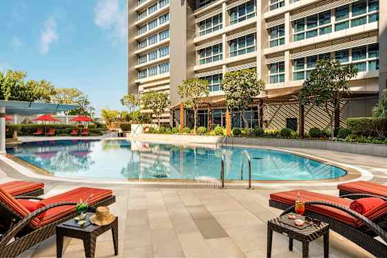 Hotellets bassengområde har barnebasseng og en bassengbar, hvor du kan koble av på en solseng, ta deilige bad i bassenget og nyte kjølende drikke. I hotellets restaurant kan du velge blant generøse bufféer og velsmakende retter fra meny, og her finner du blant annet retter fra det asiatiske og italienske kjøkken.