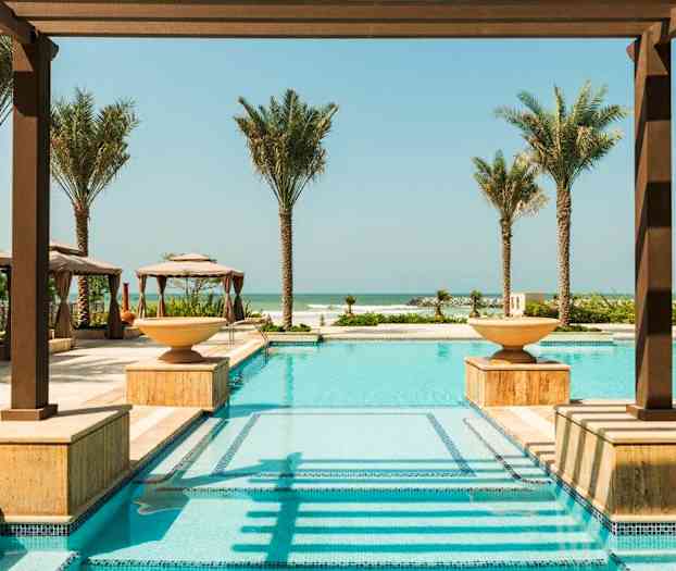 Ajman Saray, a Luxury Collection Resort, er et luksuriøst og førsteklasses hotell direkte på stranden langs kysten i Ajman. Her bor du med havet og det det vakre grøntområdet som nærmeste nabo, og på hotellet er det en rolig og avslappet atmosfære.