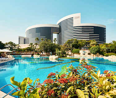 Nyt den luksuriøse komforten i et stort rom med arabisk touch. Rommene har fantastisk utsikt over Dubais skyline eller bukten.