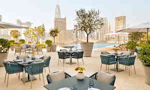 På hotellet er det tre store bassengområder med solsenger, bali-senger og parasoller hvor du kan slappe av etter en dag med shopping. Ved et av bassengområdene er det også en bassengbar hvor du kan bestille noe godt å drikke. Address Dubai Mall har også en restaurant med bar som serverer en stor frokostbuffé og lunsj samt middag fra meny.