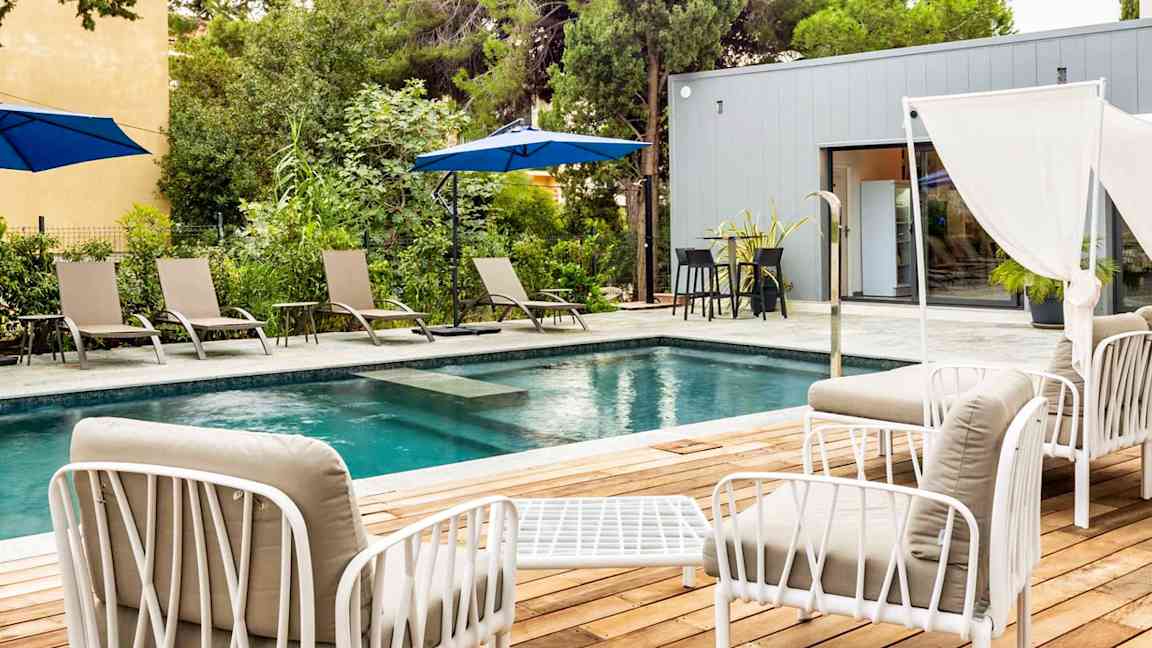 I Calvi kan du bo sentralt inne i byen, på et hotell med basseng, eller et stykke utenfor, hvor det er litt roligere.