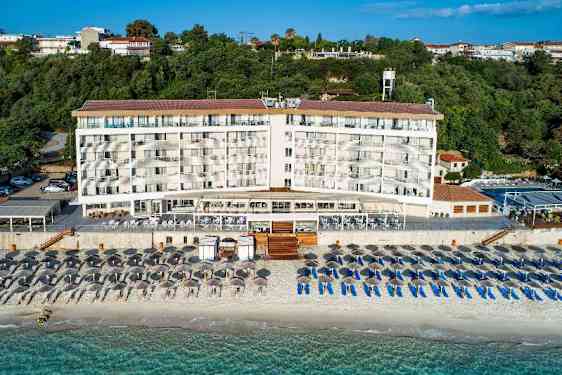 Det første hotellet som ble bygd i Khalkidhiki er sannsynligvis det eneste hotellet rett på stranden. Bestående av 112 rom og 14 suiter, tilbyr det luftkondisjonerte hotellet en lobby med 24-timers resepsjon og utsjekkingstjeneste. Måltider og drikke tilbys i baren og restauranten. Internettilgang og parkeringsplass tilbys også. Hotellet har rom og suiter som alle er fullt renoverte og utstyrt med individuelt justerbar luftkondisjonering, oppvarming og kabel-TV. De private baderommene har dusj og badekar. Flere standardfasiliteter på rommene inkluderer en dobbeltseng, safe og balkong eller terrasse. Gjestene kan benytte det utendørs svømmebassenget med barnebasseng, bassengbaren og damprommet. Aktive gjester kan stå på vannski eller padle i kano. Porto Carras golfklubb ligger rundt 82 km fra hotellet. Buffeter serveres til frokost og middag.