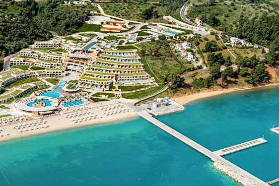 Miraggio Thermal Spa Resort er et førsteklasses hotell med den beste beliggenheten, rett ved stranden. Hotellet ligger i rolige omgivelser i nydelige Halkidiki omringet av furuskog og hav.