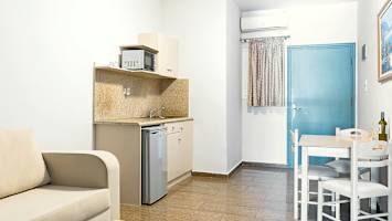 Som gjest på Massouri Beach er du velkommen til å benytte fasiliteter som basseng og barnebasseng på søsterhotellene Elena Apartments (ca. 160 m unna) og Elena Village (ca. 1,1 km unna).