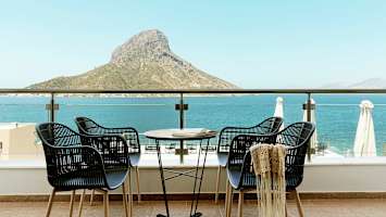 I tilknytning til resepsjonsområdet er det en stor terrasse hvor du også har herlig utsikt og kan nyte solnedgangen. Massouri Beach har fin beliggenhet midt på hovedgaten i Massouri, og i hotellets nærhet er det flere hyggelige tavernaer, barer og små butikker. Både på hotellet og i området rundt er det mange trapper og nivåforskjeller.