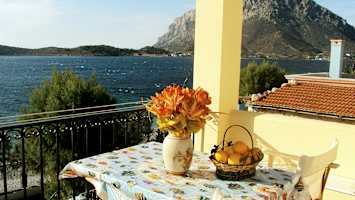 Mange turister tar badebåten fra Mirties til den lille naboøya Telendos. Om du krysser øya kommer du til en liten og rolig steinstrand som ligger i en bukt omgitt av klipper. Det er utleie av solsenger her.Emborios