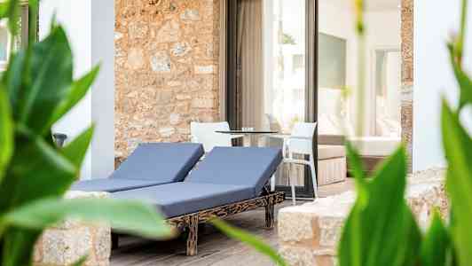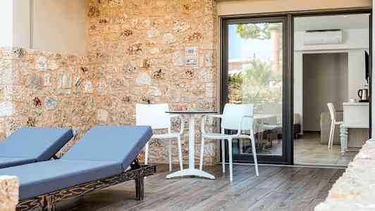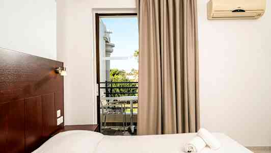Apollon Hotel har lyse og stilrene rom og suiter med balkong eller terrasse.