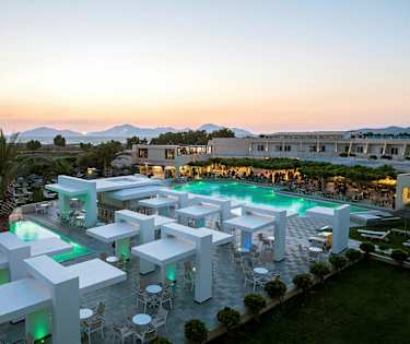Strand- og turistområde med lokaltrafikk. Marmaris lille sentrum, med et par tavernaer og et supermarked, ligger i behagelig gangavstand fra hotellet. I nabobyen Tigaki, ca. 6 km unna, finner du flere restauranter, småbutikker og et litt mer livlig uteliv. For et enda større utvalg av shopping, kafeer og restauranter kan du ta turen til Kos by, som ligger ca. 16 km fra Marmari.