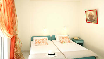 Apelia er et lite og personlig leilighetshotell med rolig og sentral beliggenhet i Agia Marina. Her bor du i praktisk innredede leiligheter med mulighet til å lage dine egne måltider, samtidig som du har nærhet til hovedgatens restauranter og butikker. Når du ønsker å kjøle deg ned i varmen, kan du bade i hotellets basseng og nyte forfriskende drikkevarer i bassengbaren, eller slappe av på den store gressplenen ved siden av. Hvis du foretrekker å bade i havet, trenger du bare å gå noen kvartaler for å komme til stranden, hvor det er solsenger til leie.