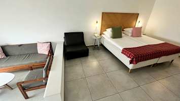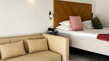 Bella Vista Village er et fint hotell som ligger vakkert til i rolige omgivelser, på en høyde blant olivenlundene i Agia Marina. Fra hotellet har du strålende utsikt over Chaniakysten og de majestetiske Lefka Ori-fjellene. Hotellet har en fin hage med gressplener og et bassengområde med to basseng. Her kan du slappe av på en solseng og ta dagen som den kommer. Vil du ha det litt ekstra luksuriøst i ferien, har du mulighet til å bestille et dobbeltrom med privat basseng på Bella Vista Village. Hotellet tilbyr mange forskjellige typer rom og juniorsuiter som ligger fordelt i to bybninger, en gammel og en litt nyere bygning, men felles for alle rom er at de har lyst og fint interiør.