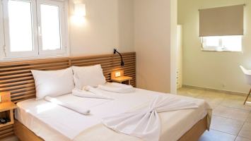 Mithos Premium Rooms tilbyr lyst innredede dobbeltrom og familierom for opptil fire personer. Alle rommene har balkong, og hvis du vil unne deg litt ekstra luksus i ferien, kan du bestille et rom med havutsikt. Dagene kan du tilbringe på en solseng ved hotellets lille bassengområde, eller på stranden hvis du foretrekker det.