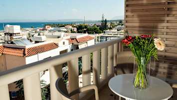 Mithos Premium Rooms er et lite, enkelt og sjarmerende hotell nær stranden i Agia Marina. Hotellet passer først og fremst for deg som vil bo komfortabelt med god beliggenhet. Her bor du bare en kort spasertur fra hovedveien i Agia Marina, der du finner flere restauranter, barer, turistbutikker og noen matbutikker. Hvis du ønsker et enda større utvalg, er det enkelt å komme seg til Platanias sentrum med lokalbussen, eller hvis du ønsker å gå så tar det omtrent en halvtime.