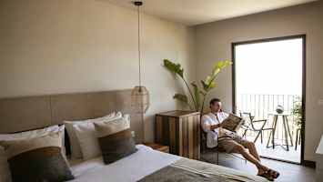 Dobbeltrom med direkte utgang til basseng og havutsikt