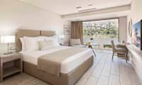 over Mirabello bukten. Hotellet ligger på stranden, 2,5 kilometer fra sentrum av Elounda, 9 kilometer fra Agios Nikolaos og 9,5 kilometer fra Agios Nikolaos fergestasjon.