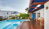 Rommene har minibar, aircondition, WiFi, safe, tv, telefon, badekåper, tøfler, hårføner, bad og balkong/terrasse.