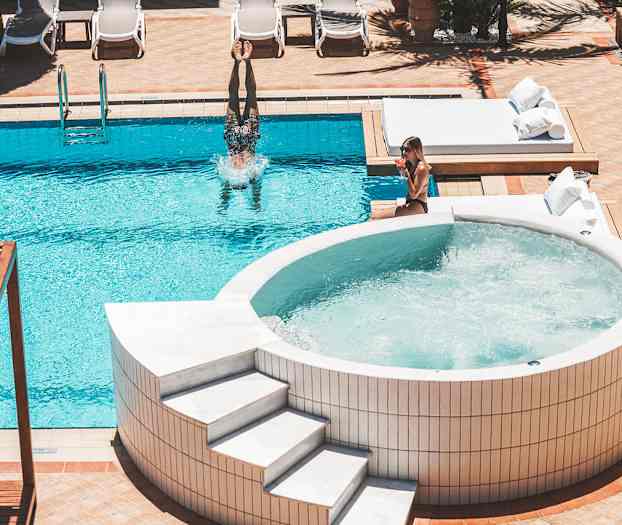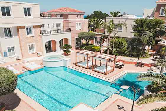 Zeus Village Resort - Adults Only har moderne og stilfulle rom og juniorsuiter mot hagen og bassengområdet. Hvis du ønsker å unne deg litt alenetid, er det mulighet for å bestille manikyr og pedikyr på hotellet, og for litt ekstra luksus anbefales en avslappende massasje.
