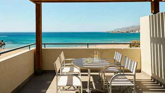 All Inclusive-hotellet Atlantica Mikri Poli Crete ligger ved den vakre sandstranden Lagoufa Beach i Makrigialos og passer for både store og små feriegjester. Her møtes du av en stilren og moderne innredning som preger hele hotellet, fra de lyse og flotte rommene til de innbydende bassengområdene.