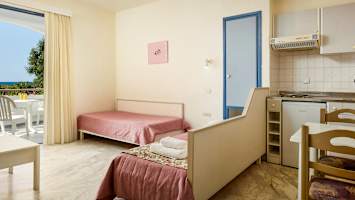 Ariadne Rethymnon er et hyggelig leilighetshotell med en familievennlig atmosfære, perfekt både for avslapning og oppdagelsesferder. Her kan du slappe av ved bassengområdet, som er utstyrt med solsenger, parasoller og et separat barnebasseng for de yngste gjestene. Platanes strand ligger bare en kort spasertur unna, og du finner også små butikker, tavernaer og kafeer i nærheten.