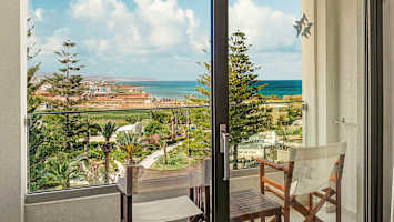 Rommene og juniorsuitene på Creta Star har smakfull innredet med dempede fargetoner. Ønsker du å nyte det glitrende havet også fra rommet, kan du bestille et rom med havutsikt.
