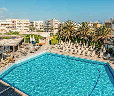 Minos har et innbydende bassengområde med solsenger og bassengbar, samt et separat barnebasseng med små vannsklier for yngre barn. På hotellet er det også et mindre basseng med aldersgrense, for voksne som vil ha ro og slappe av i ferien.