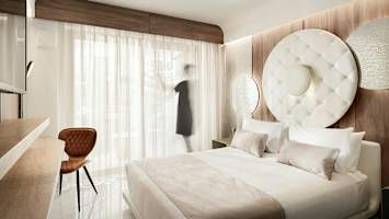 Rommene på Nautilux Rethymno by Mage Hotels er lyse, romslige og elegant innredet i moderne design. Fargene går i rolige toner med naturlige materialer. Vil du unne deg litt ekstra luksus, kan du bestille et rom med egen plunge pool på terrassen.