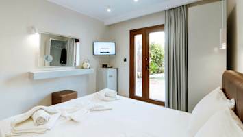 Hvis du vil slappe av på en solseng, trenger du ikke å gå langt. Rett ved hotellet ligger en mindre og roligere strand, hvor du kan leie solsenger og parasoller. Den større stranden i, Krioneri, ligger kun en kort spasertur fra hotellet, og også her finnes det solsenger til leie.