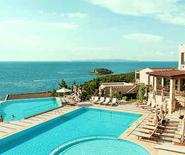 Sivota Diamond Spa Resort er et elegant hotell som ligger på en høyde med fantastisk utsikt over den vakre Bella Vraka-stranden, en av de mest populære strendene i området. Hotellet ligger i rolige omgivelser i utkanten av Sivota, og her kan du nyte solen, havet og den frodige naturen som omgir hotellet.