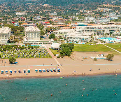 Faliraki har en fire kilometer lang strand, som varierer mellom grunne og dypere partier. Stranden består for det meste av sand, men også områder med grus og rullesteiner. Mange hevder at dette er den beste stranden på Rhodos. Den er veldig barnevennlig fordi den er beskyttet for vinden fra vest. Langs stranden finner du all slags vannsport og en restaurant som serverer enkle retter som hamburgere og pizza. Det er også en vannpark i nærheten hvor barn og voksne lett kan få tiden til å gå.Ladiko Bay og Anthony Quinn Bay – populære badestrender