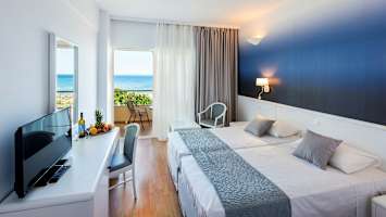 Hotellet har en gjennomført moderne og stilren innredning, og flere av rommene har vakker havutsikt. På Blue Sea Beach Resort er det flere store bassengområder med solsenger og parasoller, i tillegg til et barnebasseng med vannsklie. I bassengbaren kan du bestille noe kaldt å drikke og hotellets gjester får også gratis tilgang til solsenger på stranden ved å vise All Inclusive-armbåndet. Faliraki har en kilometerlang strand som er både langgrunn og barnevennlig.
