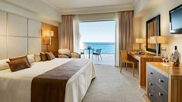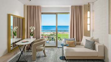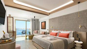 Elysium Resort & Spa har fine dobbeltrom med stilren innredning, og samtlige rom har utsikt over havet.